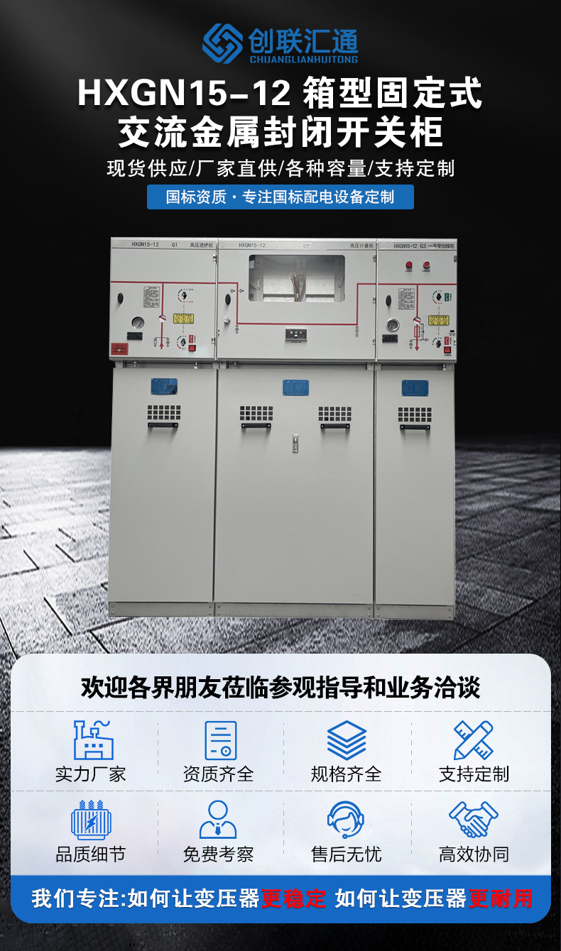 HXGN15系列是新一代以六氟化硫開關(SF6)作為主開關而整柜采用空氣絕緣、適用于配電自動化,既緊湊又可擴充的金屬封閉開關設備。具有結構簡單、操作靈活、聯鎖可靠、安裝方便等特點,對各種不同的應用場合、不同的用戶要求均能提供令人滿意的技術方案。